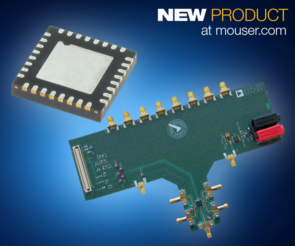 Mouser Electronics is now shipping the 4-Channel, 24GHz ADF5904 receiver downconverter and the related evaluation board and controller board from Analog Devices. Available in a compact 32-lead, 5mm × 5mm LFCSP package, the ADF5904 receiver downconverter is ideal for automotive radars, industrial radars, and microwave radar sensors.