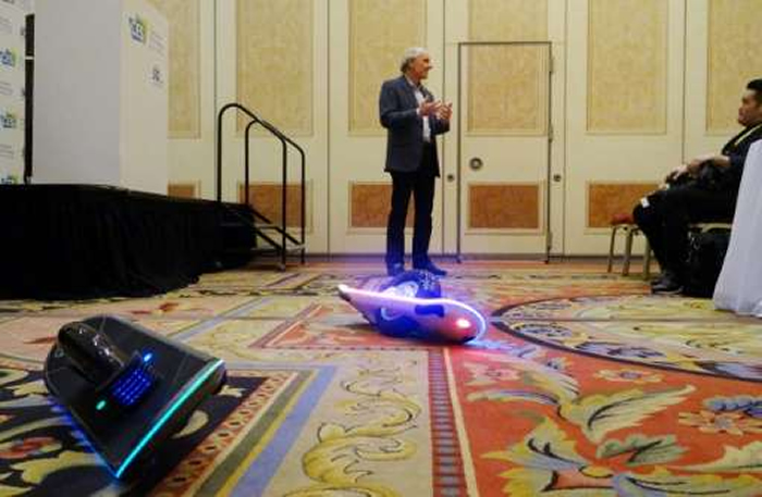 But Hoverboard Technologies founder Robert Bigler, unfazed by the controversy, on Friday unveiled his single-wheeled GeoBlade, proclaiming it to be the future of personal urban mobility.