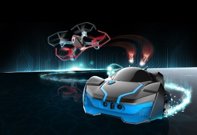 R.E.V. AIR is a Robotic Enhanced Vehicle battle-game platform that features the latest technologies in both Beaconsense Artificial Intelligence and Flight Control Systems. The app-based flight experience allows the player to engage by controlling a flying quadcopter to battle an AI ground vehicle, or even get chased in the real world by an AI quadcopter with the capability to attack, fire virtual missiles and swarm at your maneuverable R.E.V vehicle. Robot lovers: R.E.V. AIR will be available at the end of the year for $130.