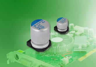 Vishay new series of aluminum polymer capacitors featuring conductive technology. For portable electronics and consumer and telecom
