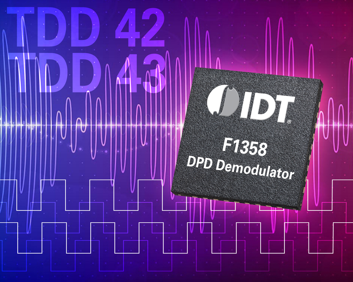 two other popular high-performance demodulators—the F1320, operating at 400 MHz to 1200 MHz, and the F1370, operating at 1300 MHz to 2900 MHz. All of the DPD demodulators feature IDT’s patented Zero-Distortion™ and Glitch-Free™ technologies and are footprint compatible.