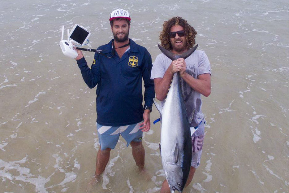 Jordan Maclean and Byron Leal use a drone to help catch longtail tuna. (Image via Sea Ulcer Aerial Media/Facebook)