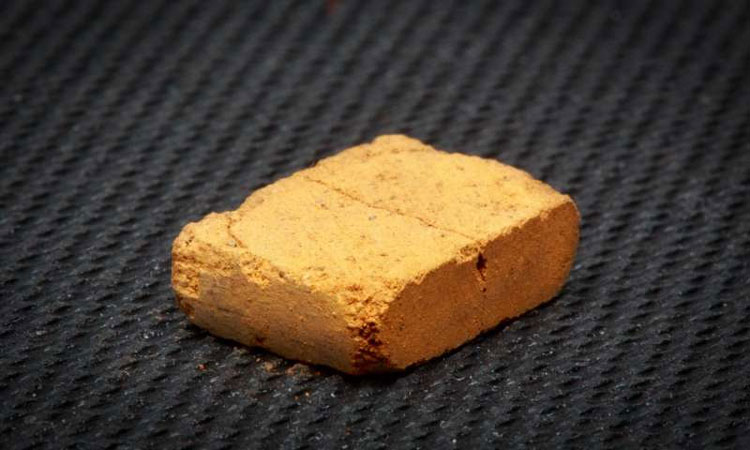 A brick made of Martian soil simulant compacted under pressure. The brick was made without any additional ingredients and without baking. Credit: Jacobs School of Engineering/UC San Diego