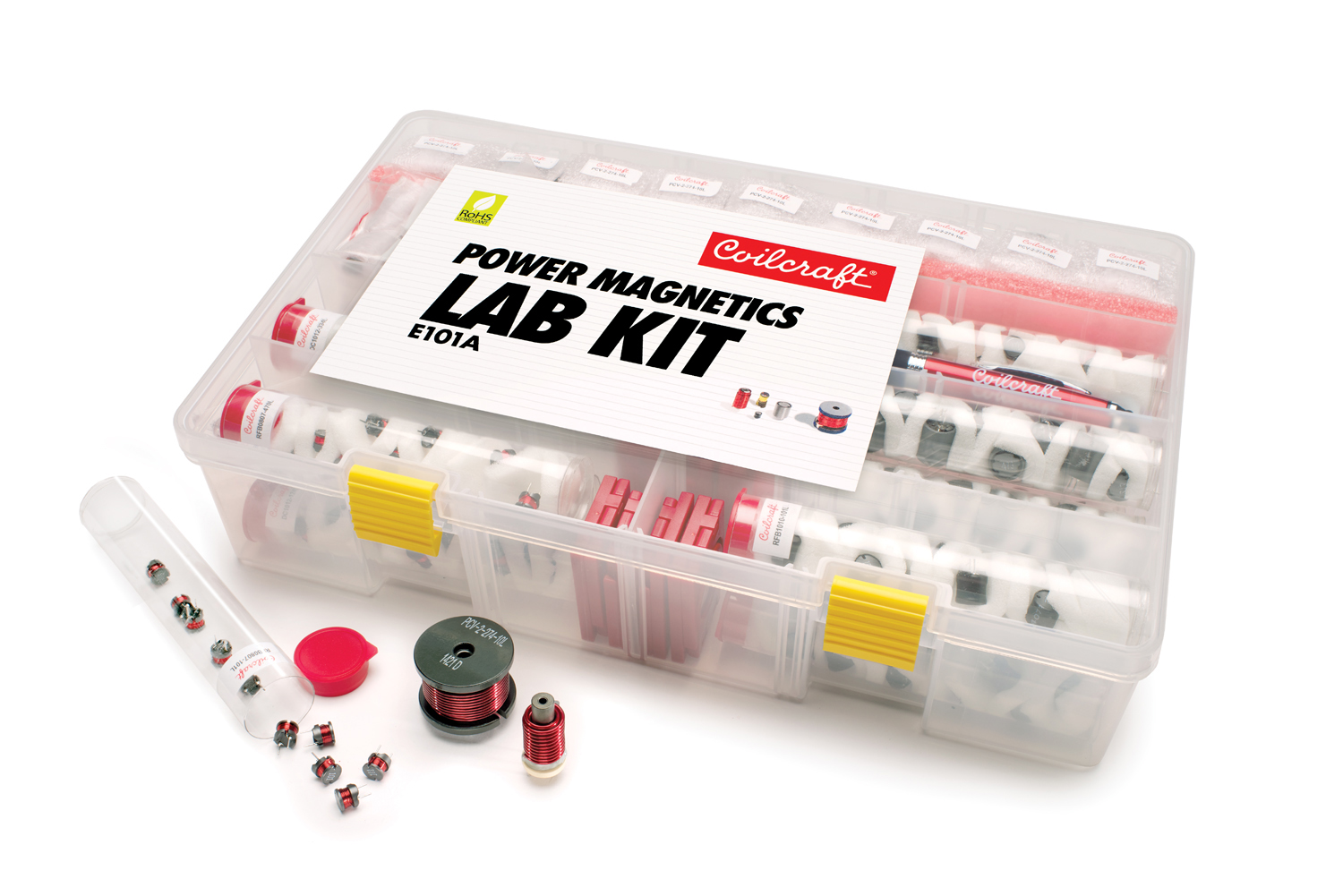 Coilcraft has developed a new Power Magnetics Lab Kit to help educators provide hands-on experience in their classrooms and instructional labs. The kit contains a broad selection of through-hole power inductors for easy soldering, and is offered free-of-charge to accredited Electrical Engineering programs.