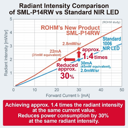 At the heart of these compact emitters is a proprietary NIR element with an optimized emission layer structure. This in-house innovation allows ROHM to achieve up to 1.4 times the radiant intensity of standard 1006-size products at the same drive current. Alternatively, designers can achieve the same optical performance using 30% less power, making these LEDs ideal for energy-sensitive designs.