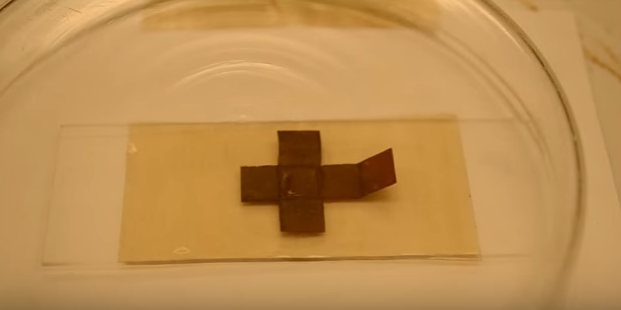 What they were left with was a material that can remember its shape as it folds and unfolds and can also heal itself when damaged. So, let’s say there’s a razor blade scratch in the material, this can be fixed by applying ultraviolet light. The material’s movements can be pre-programmed and its properties can be tailored to fit certain scenarios.