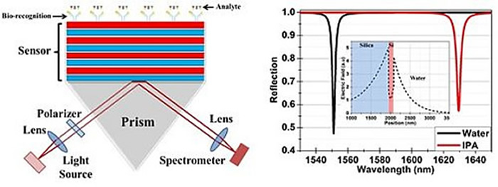 Corbett and Khan designed a simple BSW sensor, employing silicon as its surface material, which they believe has practical advantages due to the ease with which it delivers and detects light waves.